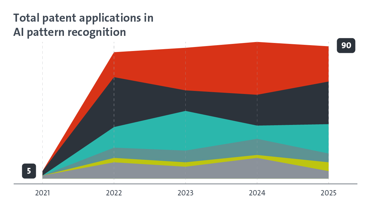 Pattern recognition involves AI detecting regularities in data, enabling early detection of fraud, cybersecurity threats or outbreaks of disease. Though so far it only accounts for less than 4% of all AI filings at the EPO, this is another area in which the US has once again surpassed Europe in terms of filing activity