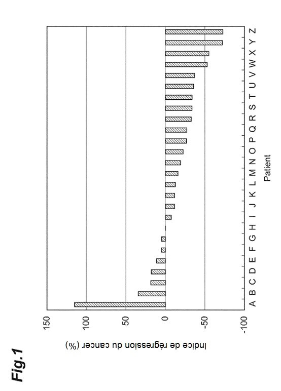 Pour les patients A à Z, un indice de régression du cancer (%) a été calculé selon la formule ci-après :