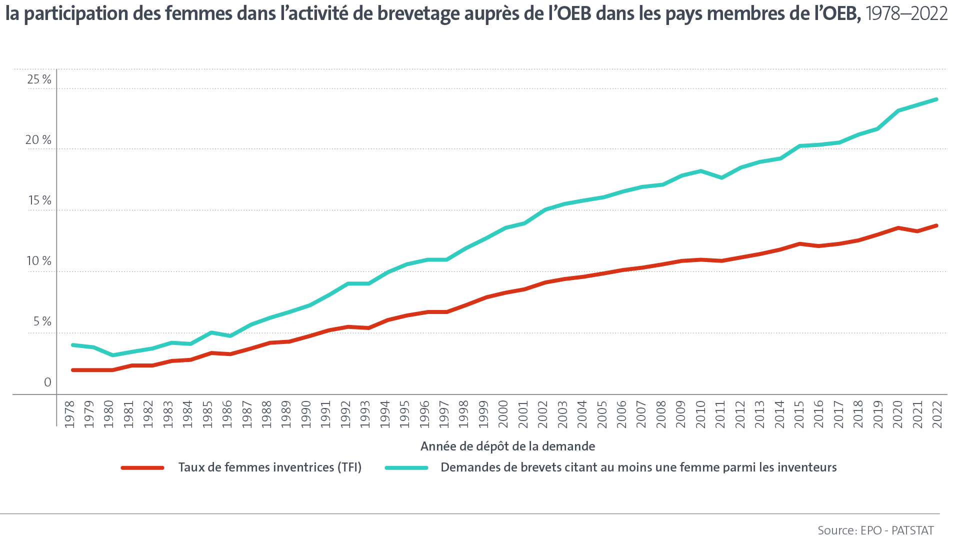 L'Observatoire des brevets et des technologies de l'OEB a publié une nouvelle étude sur les femmes dans les STIM. Elle montre les lents progrès réalisés et les écarts constatés dans l'activité d'innovation, l'entrepreneuriat engagé dans une activité de brevetage, les professions liées aux brevets et le parcours professionnel des doctorants. Publié en amont de la Journée internationale des femmes, le rapport est non seulement aligné sur la stratégie de l'Union européenne en faveur de l'égalité entre les hommes et les femmes, les objectifs de l'Espace européen de la recherche et l'ambition de l'Europe de renforcer la souveraineté technologique dans le cadre du nouveau Programme européen d'innovation, mais il offre également de solides données paneuropéennes pour éclairer et soutenir ces priorités politiques.